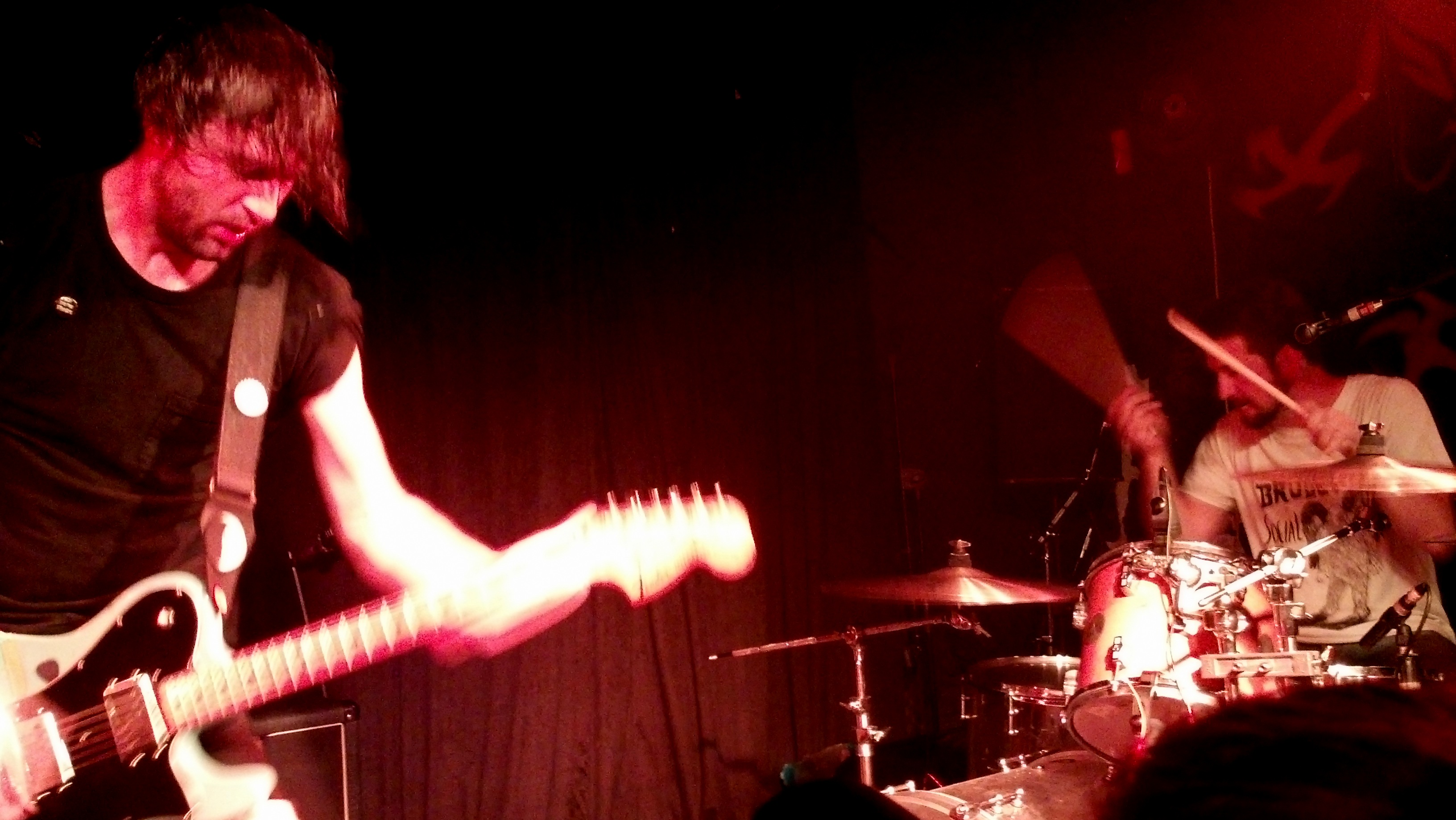 The show itself was well done and I was a bit worried that Yuyintang wouldn’t be able to accommodate an act like Japandroids (not the band, the fans), but it was alright. The show was sold out, but it wasn’t packed as tightly as I thought it would be. I mean, the crowd was probably the biggest I’d ever seen in YYT, but I felt that if there was a fire, probably most of us would’ve survived, which is how I judge if something is too crowded or not. It was wickedly, disgusted hot inside, but there was nothing really to be done about that. Like, so hot your hands stuck together when you clapped. The audience looked like we had escaped from a water park and happened to stop by a gig on our way home. Also, there was this guy behind me who kept blowing on the back of my neck, which was sooo creepy, but, um, it also felt pretty good? I was conflicted. So weird. But it was just a lot of people in a small venue on a hot day with one air-con unit over the main area. I felt more for the musicians who had to perform in the heat. Cut-offs (Japandroids’ uniform of choice) were perfectly appropriate.