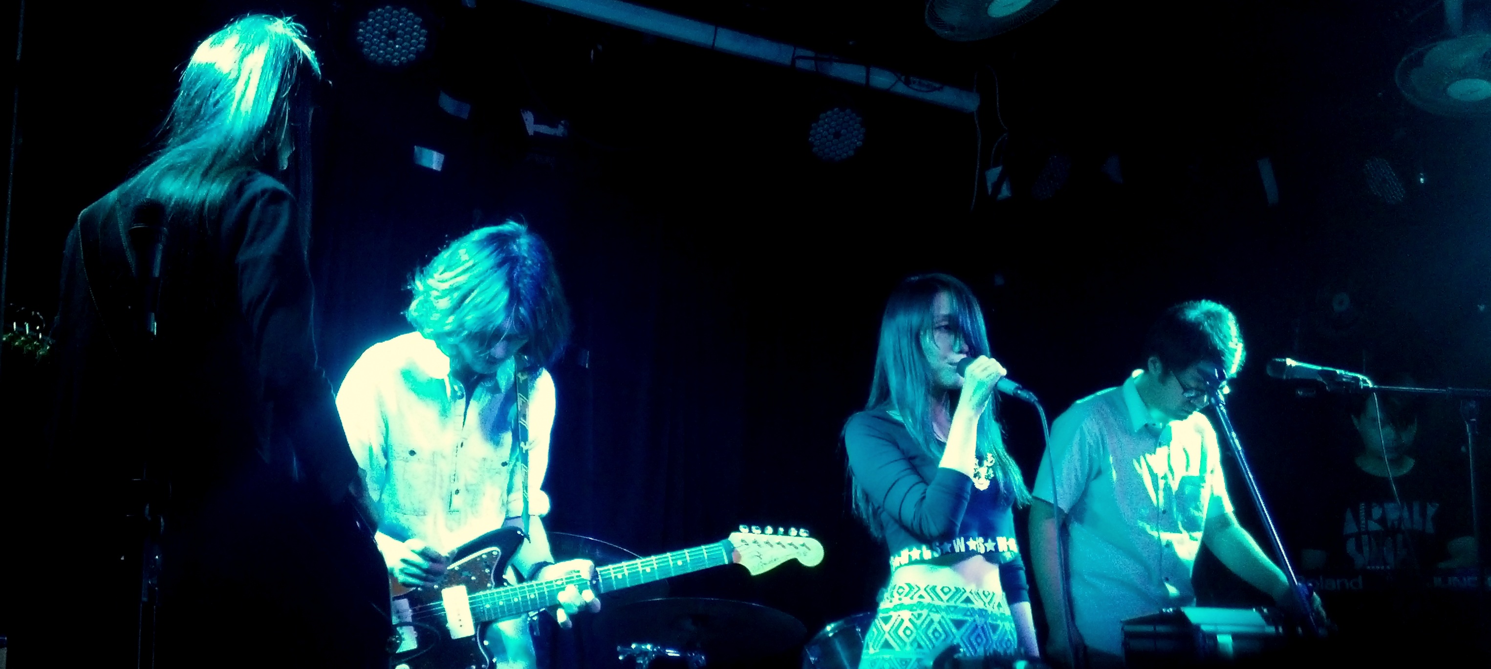 Air Walker opened — a Shanghai band that’s been around a couple of years but I don’t think I’ve seen them before. They were fairly impressive. Imagine something along the lines of dreamy, shoegaze-y pop. They would fit into a post-rock genre, as they had a bass, lead guitar and keyboardist, but also a heavy electronic feel. Also, the lead singer has an ethereal but surprising strong voice. It was delicate but powerful, which is a pretty rare quality and really fit their style. They’ve also got some nice stuff up on their Douban page. Also, they weren’t even phased when one guy in the audience stood right up by the stage and did nothing but take pictures of the lead singer (with the flash!) for the entire gig. He quickly went from regular music fan to creepy dude, probably around the hundredth photo or so.