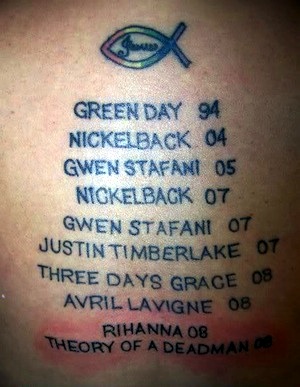 This is what Nickelback tattoos should look like. And this woman is also my Halloween costume this year and FOREVER.