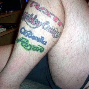 I list the list format, I like the colors, I like the different band logos. Also, I’m kind of a fan of anyone who’s not afraid to tell the world in tattoo form that he has TERRIBLE taste in music.