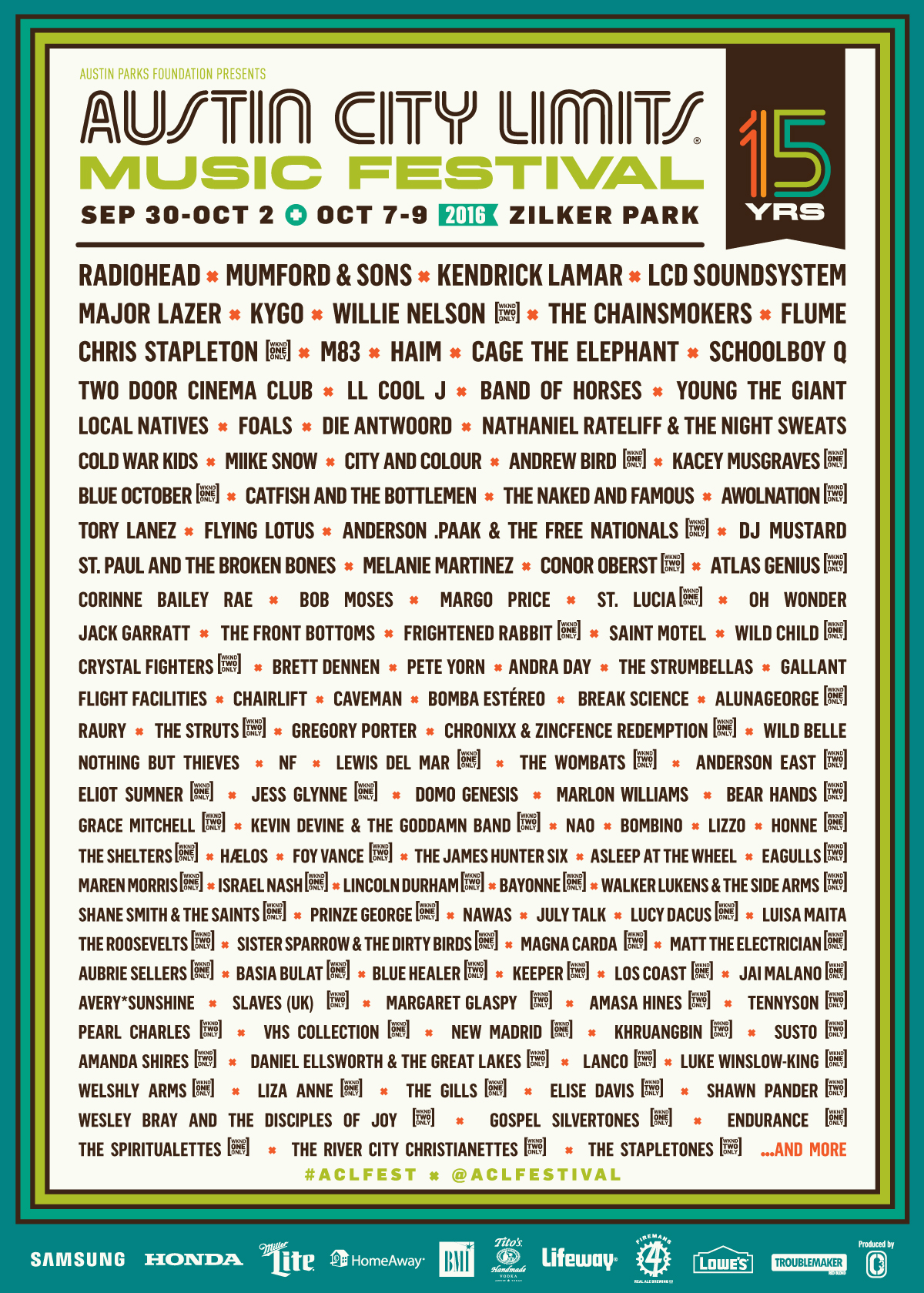 ACL Festival 2016 Lineup